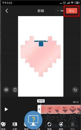 8、点击右上角的【导出】,就可以把剪辑后的视频保存到手机。