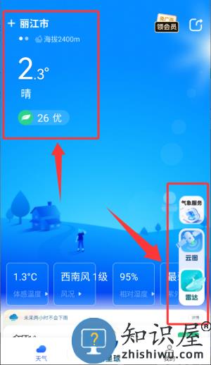 有雨时看分钟级公里级降雨预报,全新雷达配色。无雨时以上帝视角看云图,全国天气一目了然