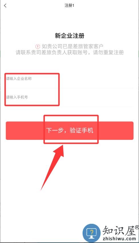 3、输入企业名称与手机号,点击下一步验证手机。