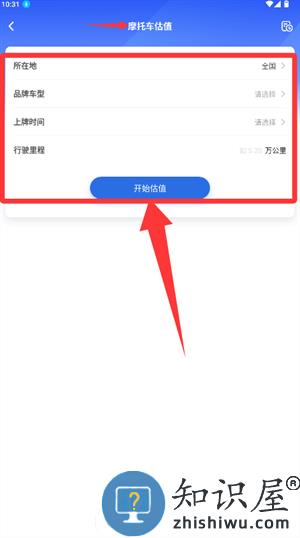 3、在估值界面填写地点及车型等信息,提交后获得评估报告。
