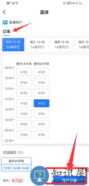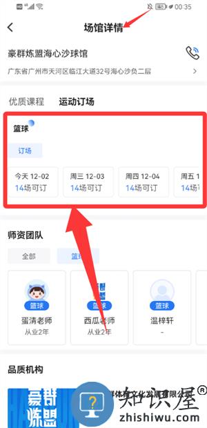 1、在场馆页面选定篮球分类,进入目标场地详情。