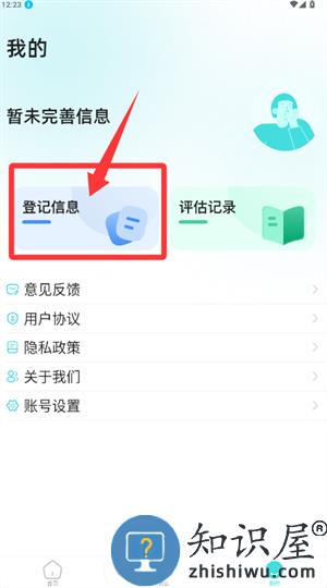 2、在个人页面中选择登记信息,以进入相关完善界面。