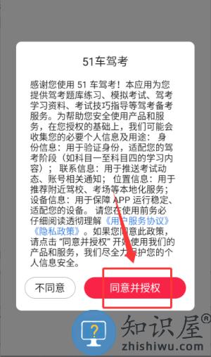 1、在51车驾考中点击"同意并授权",进入登录界面。