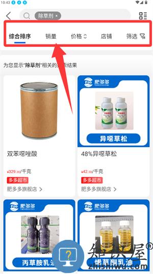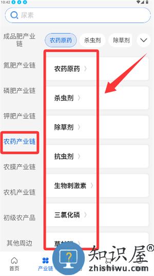 1、在产业链页选择除草剂分类,进入商品列表页面。