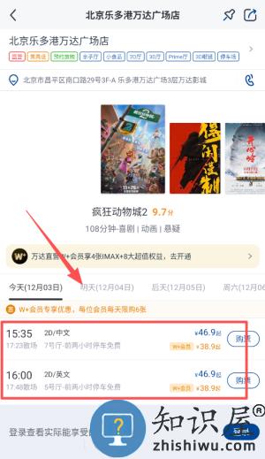 2、浏览并选择你想看的电影,点击查看详细的场次时间与票价信息。