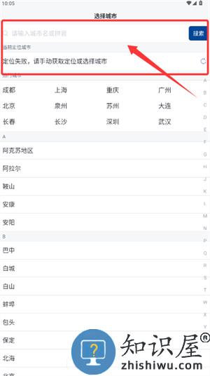 1、进入城市选择页,可通过搜索或直接点选列表中的目标城市。