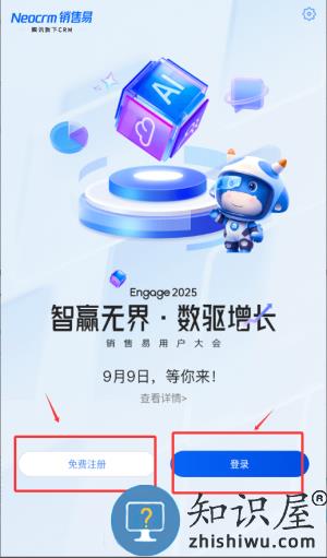 1、启动销售易应用,选择免费注册或直接登录账户。