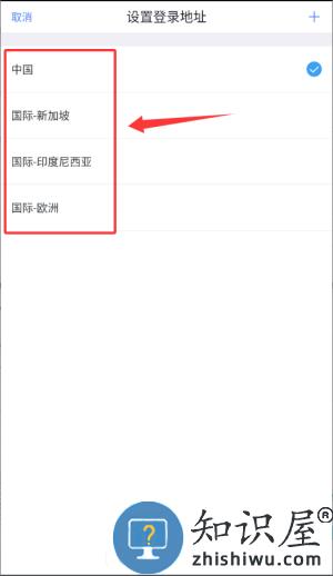 2、可在设置页面选择中国或国际区域等登录地址。