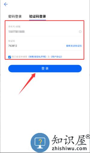 3、登录时输入手机或邮箱及验证码,勾选协议完成验证。