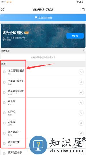 1、启动全球潮汐应用,在附近板块选择北京运河游艇会、七里海等地点。