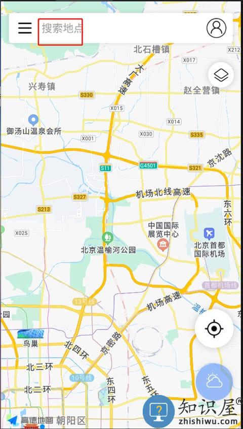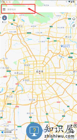 2、进入地图界面后,通过顶部搜索框输入目标地点名称查询。