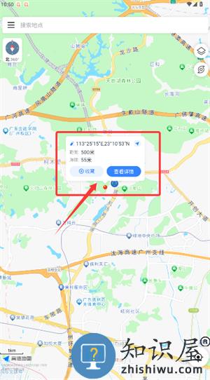 3、选定地点后点击详情按钮,可查看具体位置与距离等数据。