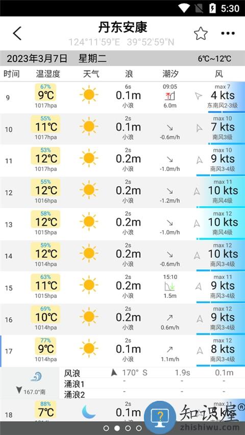 3、切换顶部日期可查看未来多日的潮汐预报同时关注下方提供的风速水温等辅助信息做好全面准备。