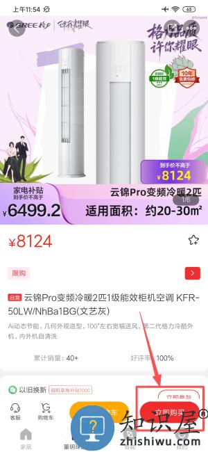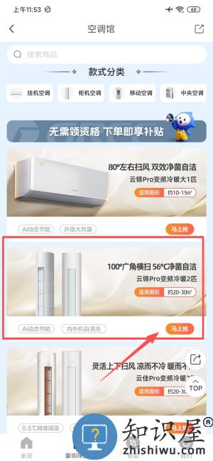 2、选定目标型号如云锦Pro空调,进入详情页面。