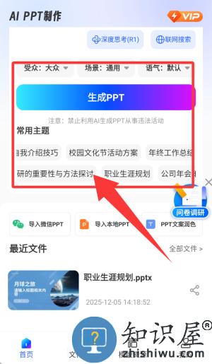 aippt制作师软件是ai智能ppt制作软件,能够用ai写ppt软件,非常适合不会做ppt的新人,只需要您输入主题,再选择素材,即可生成大家需要的ppt;对于学生、文员而言,用ai做ppt省心、省事、省力,而且比人工效率要高,最主要所有人都可以用它来制作,平时需要1小时的ppt,现在几分钟即可搞定。