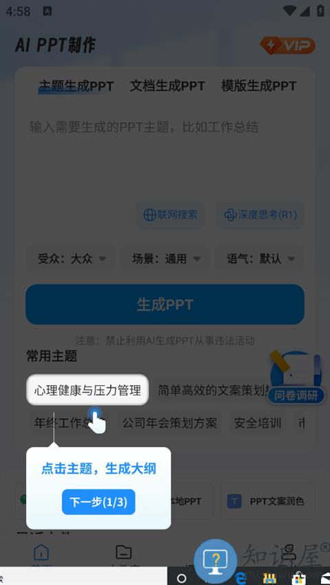 AiPPT制作师手机版是智能的PPT生成工具,借助AI技术为用户提供一键生成PPT、智能大纲构建、海量模板与素材库、多场景演示适配以及文档云端管理等实用功能,无论是职场汇报、教学展示,还是项目策划,AiPPT制作师都能助您高效完成演示文稿,全面提升工作效率与表达质量!