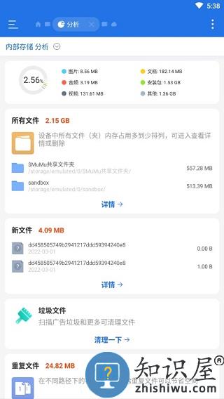 打开app,进入快捷导航—工具—文件分析器,能够显示sdcard总容量,已用可用容量,各个文件夹/文件的大小、占比、所包含文件/文件夹数量,长按可以直接删除。点击地址栏可以切换内置外置卡。点击目录分析,可以显示当前路径下的图片、音频、视频、文档、安装包、其他所占容量的情况。