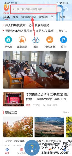 3、进入安定融媒首页,通过搜索栏查找内容。
