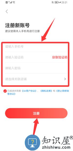 2、在注册页面填写信息并关联店铺,勾选协议提交注册。