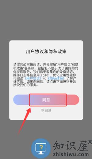 1、在用户协议与隐私政策弹窗中点击"同意",进入应用首页。