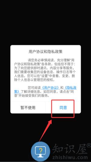 1、在用户协议与隐私政策弹窗中点击"同意",进入介绍页面。