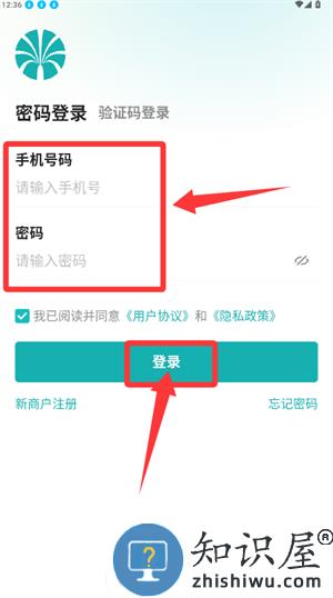 1、登录页选用密码登录,填写手机号与密码并提交。