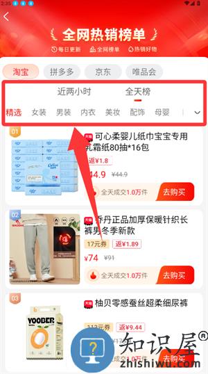 2、榜单页面支持切换时段与品类筛选,可定位目标商品。