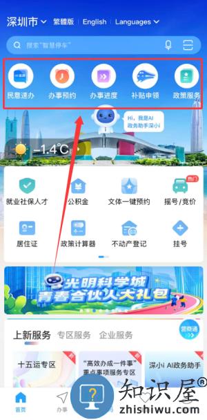 4.网上办事大厅:为深圳市民提供政务事项掌上办理服务,公租房申请、职业技能鉴定等线上便捷办理,并可随时随地查询办事指南、关注事项办理进度。