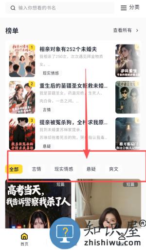 2、利用分类筛选功能,选择感兴趣的小说类型比如悬疑或言情,能快速找到合口味的内容节省挑选时间。