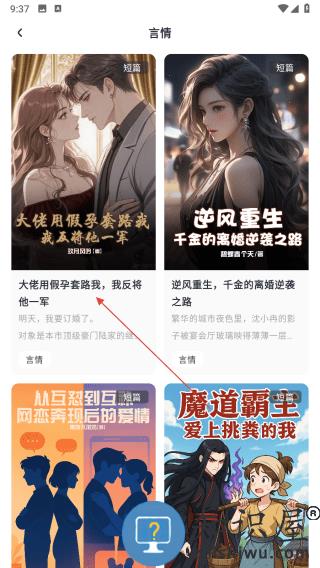 3、言情小说列表选感兴趣作品,点封面进入阅读。