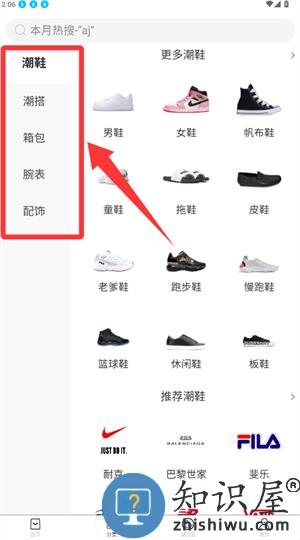 1、在分类页选择潮鞋类目,并点选男鞋项查看商品列表。