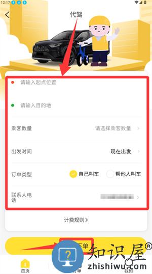 2、进入首页点击代驾选项,跳转至服务下单页。