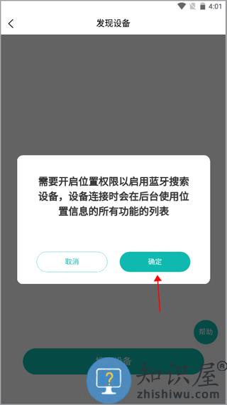 3、然后在弹出框中点击确认,打开蓝牙等权限进行扫描连接设备。