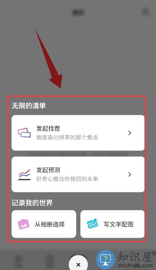 4、发布页支持发起话题讨论、创建预测活动以及上传图文记录。