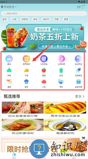 3、返回主界面后,可选择美食、超市便利等服务图标中进行浏览。