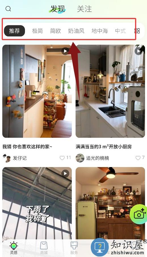 2、灵感页提供多种装修风格参考,如极简、中式、地中海等。