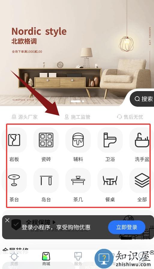 3、商城汇聚源头厂商产品,涵盖瓷砖、卫浴、辅料等装修材料。