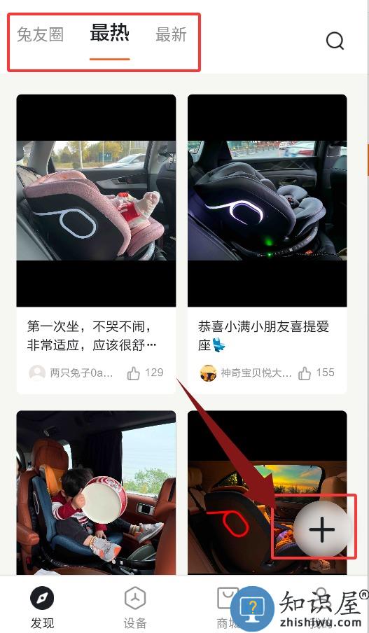 2、发现页可浏览兔友社区的最新与热门动态,右下角支持发布。