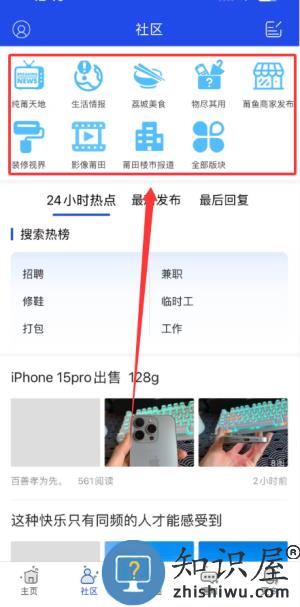 4、切换至社区板块可以浏览生活实用资讯闲置物品交换装修经验分享以及以莆田为主题的摄影作品与影像记录。