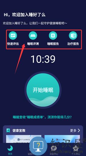 3、登录后首页显示快速评估与睡眠评测等功能入口,自由选用。