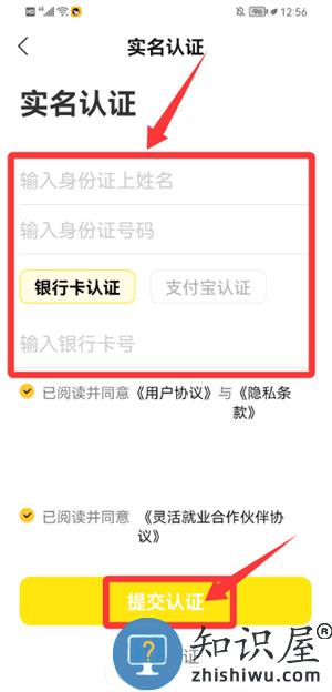 3、填写姓名与身份证,选择认证方式并提交即可。