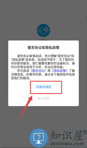 1、于服务协议弹窗中点选同意并接受,随后进入平台登录页面。
