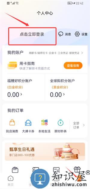 2、进入个人中心页面,点击立即登录按钮完成账户验证。