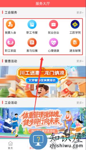 3、首页提供了数字版工会报纸法律咨询服务工粉会员俱乐部及普惠福利活动等工会特色资讯与服务入口。
