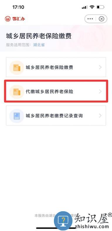 3.选择“城乡居民养老保险缴费”按照页面提示操作即可完成城乡居民养老保险缴费。另外,您还可以通过鄂汇办支付宝小程序缴费。
