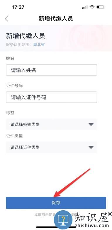 第四步:点击“增加”,按照页面提示输入代缴人员姓名、证件号码,选择标签及证件类型,点击“保存”。