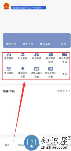 2、首页提供了行业信息查询综合服务办理诚信考核申请普通货物运输车辆年审及诚信考核结果查看等功能。
