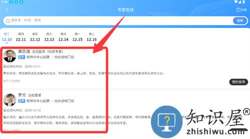2、浏览专家列表,根据专业信息筛选合适医生。