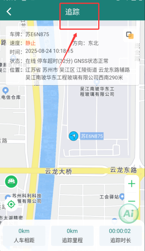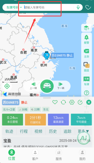 3、通过卫星定位系统实时追踪目标车辆的行驶路线与当前位置。