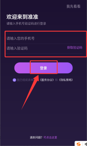1、于用户协议弹窗中点选同意,随后进入验证码登录页面。